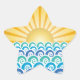 Vinheta estelar com design com diferentes tons de ondas azuis com sol brilhante no horizonte.