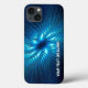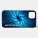 Uma imagem fractal monocromática semelhante a uma intrincada gravação de uma estrela multiarmada, ou multiasa, em metal azul ou plástico. Adicione seu próprio texto.
