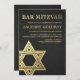 Fundo preto Dourado do quadro da estrela | da folha do falso dos convites | de Mitzvah do bar
