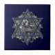 Estrela Elegante de David com símbolo tradicional de hexagrama azul e branco elogiado por um ornamentado barroco de fundo prateado. Arte de Margaret Loftin Whiting.