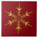 Uma Estrela de Natal de ouro de seis pontos sobre um pano de fundo vermelho.