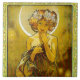 Se um de alta qualidade, 6" azulejo poderia nunca ser inspirado, este pode certamente; ainda mais quando moldar. Este é naturalmente estrela de noite de Alphonse Mucha, e um outro exemplo requintado muito do melhor do movimento de Nouveau da arte dos 1800s atrasados aos 1900s adiantados.