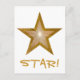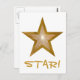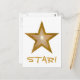 Design moderno com ouro brilhante e brilhante e estrela branca em fundo branco. Cartão postal com um design personalizável em ouro e branco para personalizar com seu próprio texto, imagens e ideias. O texto pode ser facilmente alterado usando o modelo fornecido ou clique no botão 'Personalizar o texto' para fazer outras alterações. Criado por Jess Perry usando fotografias originais e técnicas digitais.