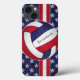 O caso Xtreme X Tough, no iPhone de vôlei das mulheres, apresenta um vôlei de solteiro com painéis vermelhos, brancos e azuis, que se misturam com um efeito de textura digital de abstrato, assim como o fundo azul com estrelas brancas sobre a superfície - faixas vermelhas e brancas assimétricas funcionam verticalmente, e seu nome personalizável está em um ângulo no vôlei - de katz_d_zynes