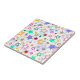 design multicolorido combina formas de estrelas sólidas e delineadas em uma harmonia lúdica e caótica de vermelho, roxo, azul, dourado e azul-turquesa em um fundo Branco
