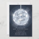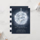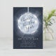 Os convites de festas festivos e modernos da véspera de Ano Novo, em azul-da-meia-noite, apresentam uma bola iluminada da véspera de Ano Novo com "aplausos para o ano novo" inscrito no dentro. Personalize com os detalhes do seu partido em branco.