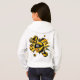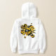 O capuz de basquete desta garota divertida apresenta uma "explosão" de esferas de basquete de tamanho variado que têm painéis coloridos em preto e ouro alternados e formas de estrelas pretas, douradas e brancas - personalizadas com o nome do atleta, o monograma e o número de camisa - o design está na parte de trás do capuz, mas pode ser movido ou duplicado na frente - por katz_d_zynes