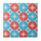 Este é um elegante estouro branco retrógrado em círculos vermelhos e azuis. É um azulejo cerâmico excelente para qualquer um que ama designs do médio geométrico