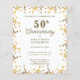 Douradas Estrelas 50º aniversário de convite orçamental Recursos delicados de amor por ouro e recortes de estrelas. Personalize suas informações de 50 anos de ouro com uma elegante carta dourada.