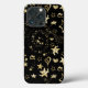 Estrelas modernas de ouro de folha e corações sobre fundo preto
