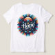 A design da camiseta "Stars and Hope" mostra um céu noturno sereno adorado com estrelas cintilantes. No seu coração está uma estrela radiante, simbolizando esperança e luz orientadora. Em seu redor estão constelações suaves, brilhantes e sutis ondas de luz, evocando um senso de paz e otimismo. O tema celeste do design é elegante e inspirador, representando a esperança duradoura que brilha até nos tempos mais negros.