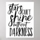 Poster moderno com caligrafia moderna rustica. Itens semelhantes e outras cores estão disponíveis. "Estrelas não podem brilhar sem escuridão."