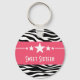 Trendy e moderna Stars Zebra Print Sweet 16 Chaveiro com um fundo de impressão em preto-e-branco e uma borda magenta ousada adornada com um divertido motivo de estrela. Esta chaveiro feminina é uma escolha de quadril e na moda para um doce favor de 16 festas. Fácil de personalizar, basta adicionar detalhes da parte nos campos de texto fornecidos. Clique em "Personalizar" para encontrar mais opções de personalização.