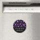 Design moderno com estrelas roxas e brancas "brilhantes" sobre fundo preto. Imã de geladeira com um design personalizável para personalizar com sua própria cor de fundo, texto, imagens e ideias. Note que esta é uma imagem impressa criada usando fotografias originais e técnicas digitais, que ela não brilha ou contém faíscas reais.