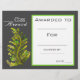 Um prêmio acadêmico de classe escolar prêmio de uma imagem temática de eco-ciência de folha verde em perfeita perfeição para estimular um jovem estudante de ciência, ecologia, biologia ou meio ambiente. Você pode escrever em seus próprios detalhes. Um recurso de excelente para qualquer tipo de professor de sala de aula.