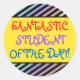 Este design de autocolante brilhante mostra a mensagem "ESTUDANTE FANTÁSTICO DO DIA!". Um adesivo como este talvez pudesse ser usado para encorajar um estudante. [~Z0000317]
