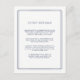 Elegante e simples, este pequeno cartão azul e branco de marinho permite compartilhar detalhes chave com seus convidados de casamento. Projetados para combinar com nossa coleção de casamento de Eternos, as cartas apresentam uma fronteira geométrica azul marinho e uma letra serif clássica. Que informações incluir em um convite de casamento? Considere detalhes como acomodações de hotel, códigos de grupo, transporte, instruções, informações de recepção de boas-vindas e sua URL do site de casamento. Você pode até fazer upload de um mapa para o lado inverso usando a função Personalizar.