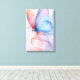 This breathtaking vertical artwork captures a single, majestic butterfly in a moment of tranquil flight. The wings are rendered in contrasting, yet harmonious, pastel tones of soft blue, coral pink, and peach, giving them a luminous, translucent quality. The butterfly is surrounded by flowing, silk-like plumes of color that blend into the dreamy background, creating an ethereal and weightless atmosphere. This piece is perfect for adding a touch of serene elegance, lightness, and modern feminine charm to any space
