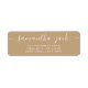 4 LINES Na moda de casamento moderno Rótulo de endereço de retorno 4 LINES Moderno de casamento Elegante Na moda de roteiro de retorno Rótulo simples em bege de camelo e datilografia branca com nomes de família de casais em caligrafia manuscrita e endereço de retorno em fonte padrão de sans serif clássica. Perfeito para Rspv e convites de casamento.