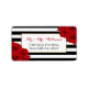 A coleção de luxo moderna de chic apresenta um histórico clássico de listras brancas e pretas, acentuado com belas rosas vermelhas de rubi e uma falso estrutura de folha de ouro. Essas etiquetas são fáceis de personalizar e serão o acessório perfeito para qualquer casamento, chá de panela, festa de aniversário, celebração de noivados ou qualquer outra ocasião especial.
