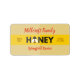 O gráfico simples das abelhas de mel substitui a segunda letra da palavra HONEY numa banda laranja ao longo do centro para criar uma etiqueta de frasco de mel com texto personalizado para o nome do apicultor da família e informação de contato sobre duas tonalidades de ouro claro.