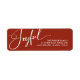 Estas elegantes etiquetas de endereços de Natal de retorno dizem "alegre" na caligrafia moderna de escrituras brancas num clássico fundo vermelho festivo.