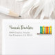 Este modelo de etiqueta de endereço de devolução personalizado exclusivo apresenta livros coloridos em uma prateleira e seu nome em uma fonte animada. Você pode usar dois primeiros nomes, seu sobrenome, um nome comercial ou qualquer outro formato que atenda às suas necessidades. Você também pode alterar o estilo, a cor e o tamanho do texto, e a cor base também. O texto dos nomes é uma tonalidade verde média escura elegante, e o texto do endereço é um tom cinza por padrão. Crie seu próprio visual personalizado com as ferramentas de design intuitivas, e por favor, verifique nossa loja para uma grande seleção de etiquetas de endereço de devolução!