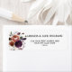 Projetado para combinar com nossa coleção de casamento Ameixa Rústica, este rótulo apresenta um spray de rosas roxas em aquarela e penas