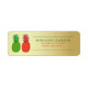Essas etiquetas de endereço de retorno de feriado modernas e únicas apresentam imagens de abacaxi vermelho e verde em um fundo de folha de ouro falso. NOTA: o ouro é impresso e não é folha de ouro.