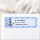 Âncora com ilustração de corda sobre o fundo uniforme azul claro das ondas. Texto personalizado.