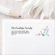Etiqueta de endereço de retorno decorada com uma âncora azul gira, um peixe-estrela vermelho e dólares de areia e amêijoas.