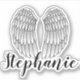 Este adesivo adorável apresenta belos anjos ou asas de pássaros em branco junto com um nome personalizado. Faz um presente de excelente para um amante de anjo ou uma adição fofa à sua coleção de adesivos.