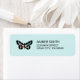 Estas etiquetas de endereço de retorno de aquarela têm uma borboleta colorida com cor rosa, azul aqua e preto sobre o fundo verde da menta e azul aqua. Etiquetas de endereço bonito e chic para o seu correio!
