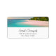 Address labels with a beautiful photograph. A scenic tropical beach with aquamarine water and a white sandy beach with a lush forest in the back.