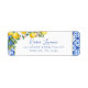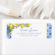 Etiqueta de endereço de devolução aquarela limões azulejo azul italiano.