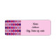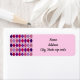 Estas etiquetas de endereço de retorno têm um design de deco de arte de formas de diamante feitas de ângulos sobrepostos em linhas pretas coloridas em tons de roxo e cor-de-rosa com linhas pretas diagonais fazeres a design parece argyle