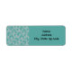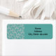 Estas etiquetas de endereço de retorno têm um design de arte de quadrados dividido em metade por linhas diagonais de prata. Os quadrados são então reunidos num campo de turquesa.