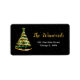 Esta elegante e chic address label apresenta uma fita de Natal verde e dourada com uma estrela superior. O texto combina o script manuscrito e as fontes sans serif modernas para um aspecto elegante e sofisticado. A neve caindo, os flocos de neve e faíscas dão um toque festivo e mágico. Isto é perfeito para o Natal e para o feriado.