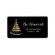 Esta elegante e chic address label apresenta uma árvore de Natal dourada e de fita preta com uma estrela superior. O texto combina o script manuscrito e as fontes sans serif modernas para um aspecto elegante e sofisticado. A neve caindo, os flocos de neve e faíscas dão um toque festivo e mágico. Isto é perfeito para o Natal e para o feriado.