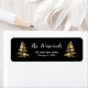 Esta elegante e chic return address label apresenta uma árvore de Natal dourada e de fita preta com presentes. O texto combina o script manuscrito e as fontes sans serif modernas para um aspecto elegante e sofisticado. A neve caindo, os flocos de neve e faíscas dão um toque festivo e mágico. Isto é perfeito para o Natal e para o feriado.