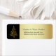 Ouro elegante, etiquetas de endereço de volta de Natal decoradas com uma árvore de Natal ornamentado.