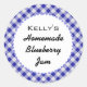 Etiqueta de doces de mirtilo de casaco azul e branco gingham vintage - personalize-o em www.zazzle.co.uk/blubush
