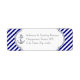 Marinho azul, listras brancas e etiqueta de náutica de ancoragem. Um design de padrão na moda striped com marinho azul, faixas diagonais brancas, uma âncora com um coração e corda azuis e seu texto em um quadro. Contemporâneo, mas com um olhar vintage, de certo modo. Você pode alterar o plano de fundo e a cor do texto escolhendo entre mais de 200 cores do gráfico de cores do Zazzle. Este design de classe é um modelo completamente personalizável e faz parte de um casamento perfeito para um casamento de verão.