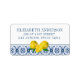 Um rótulo de endereço de retorno de noiva de limão bonito decorado com limões e azulejo italiano azul. Perfeito para o seu chá de noiva de azulejo italiano azul limão. Projetado para você por Blackberry Boulevard.