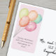 Balões de cores aquáticas de várias cores em um fundo cor-de-rosa pálido, essas etiquetas de endereço de retorno correspondem aos nossos convites para bebês. CORRESPONDENDO a itens na nossa loja.
