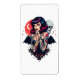 "Essa design impressionante e na moda apresenta uma mulher com uma estética retrô, adornada com tatuagens vibrantes em seus braços e possuindo asas escuras de morcego. Ela está segurando um crânio estilizado, e uma lua crescente vermelha é visível no fundo com estrelas cintilantes. O estilo geral combina elementos góticos e pin-up com um toque de romance escuro. Este design é versátil para produtos com uma estética de alternativo, bege ou inspirada em vintage. Imaginem-no em roupa, acessórios, trabalho de arte ou decoração doméstica que abraça um estilo ousado e único."