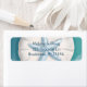 Azoto azul bonito com um dólar branco de areia com uma etiqueta de fundo litorânea de uma praia oceânica tropical com etiquetas de endereço de retorno oceânico.