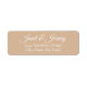 As etiquetas de endereço de retorno de cor bege para o seu convite de casamento enviando envelopes com o nome da noiva e noiva do futuro em um script branco e estilizado. Personalize suas etiquetas editando com seus próprios nomes e endereços.