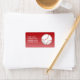 Bola de beisebol de desenho animado vermelha e branca em um fundo gradiente vermelho e uma área de texto personalizável para seu nome e endereço.