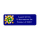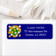 Essas etiquetas de endereço de retorno têm um design de bola com o tema de um campo de bola feito de ouros e semicírculo e bolas de basebol e softbolas feitas de círculos com fios.